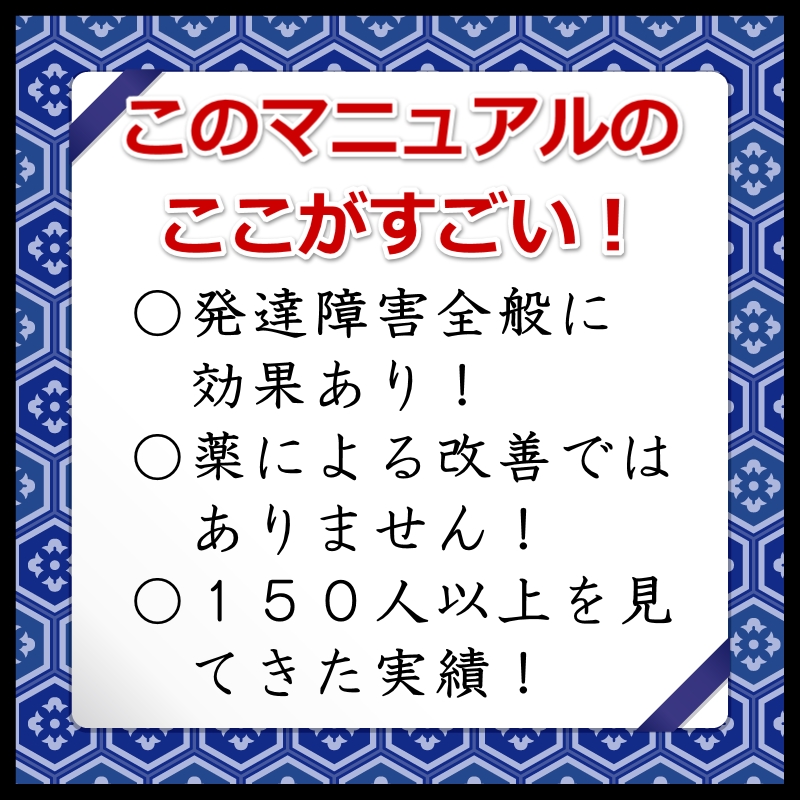 ADHDだけではなく、 発達障害全般の改善マニュアルになります。 |
